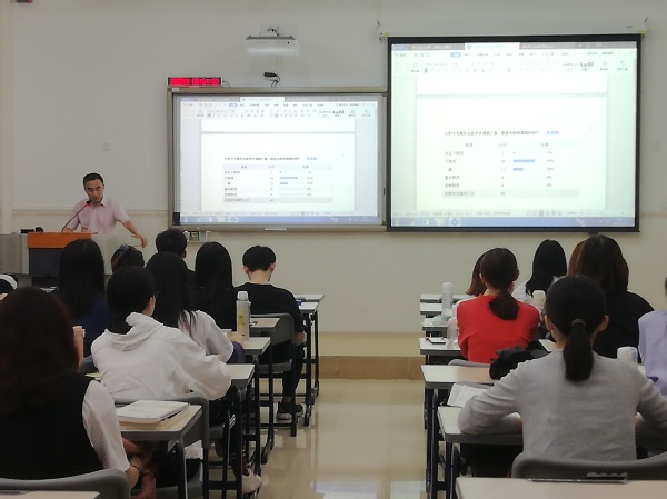 课上,易老师首先对上一堂课的课前调查问卷进行调查报告汇报与分享,根据调查问卷数据分析,大部分同学在学习《地方立法学》课程之前没有参与过地方立法活动,对课程的了解程度甚少,但是同学们对学习《地方立法学》课程的兴趣较高,在调查问卷中“通过学习《地方立法学课程》,您希望达到怎样的目标?(多选题)”这一题,同学们选择“掌握地方立法学的基本理论知识”、“熟悉地方立法的相关法律法规”和“培养良好的法学思维和职业素质”的比例超过70%,反映出同学们希望通过学习课程达到良好的学习效果。