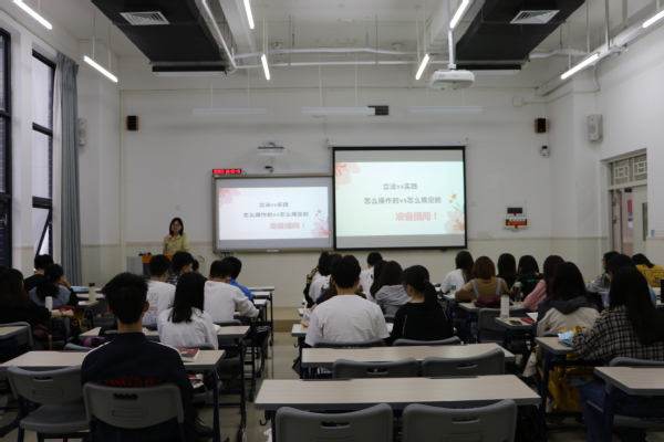 课堂上,张艺子老师首先通过“立法vs实践”小提问切入,让同学们对地方性法规起草有一定的了解,也活跃了课堂的学习氛围。她将“设区的市地方性法规起草”授课内容分为四部分:什么是地方性法规的起草、地方性法规起草的要求、设区的市地方性法规起草的模式和我市地方性法规起草的流程。结合立法法相关条款和立法案例,张老师着重阐述了地方性法规起草的要求和地方性法规起草要包含必要的内容,接着以《广东省地方立法条例》为例分析设区的市地方性法规起草的模式,最后介绍了我市地方性法规起草流程。